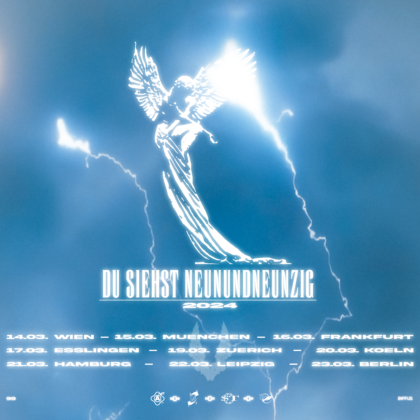 16.03 Zoom 19.00 NEUNUNDNEUNZIG DU SIEHST NEUNUNDNEUNZIG Tour 2024 Instagram Tickets VVK 21,- € zzgl. Gebühren neunundneunzig.eu/